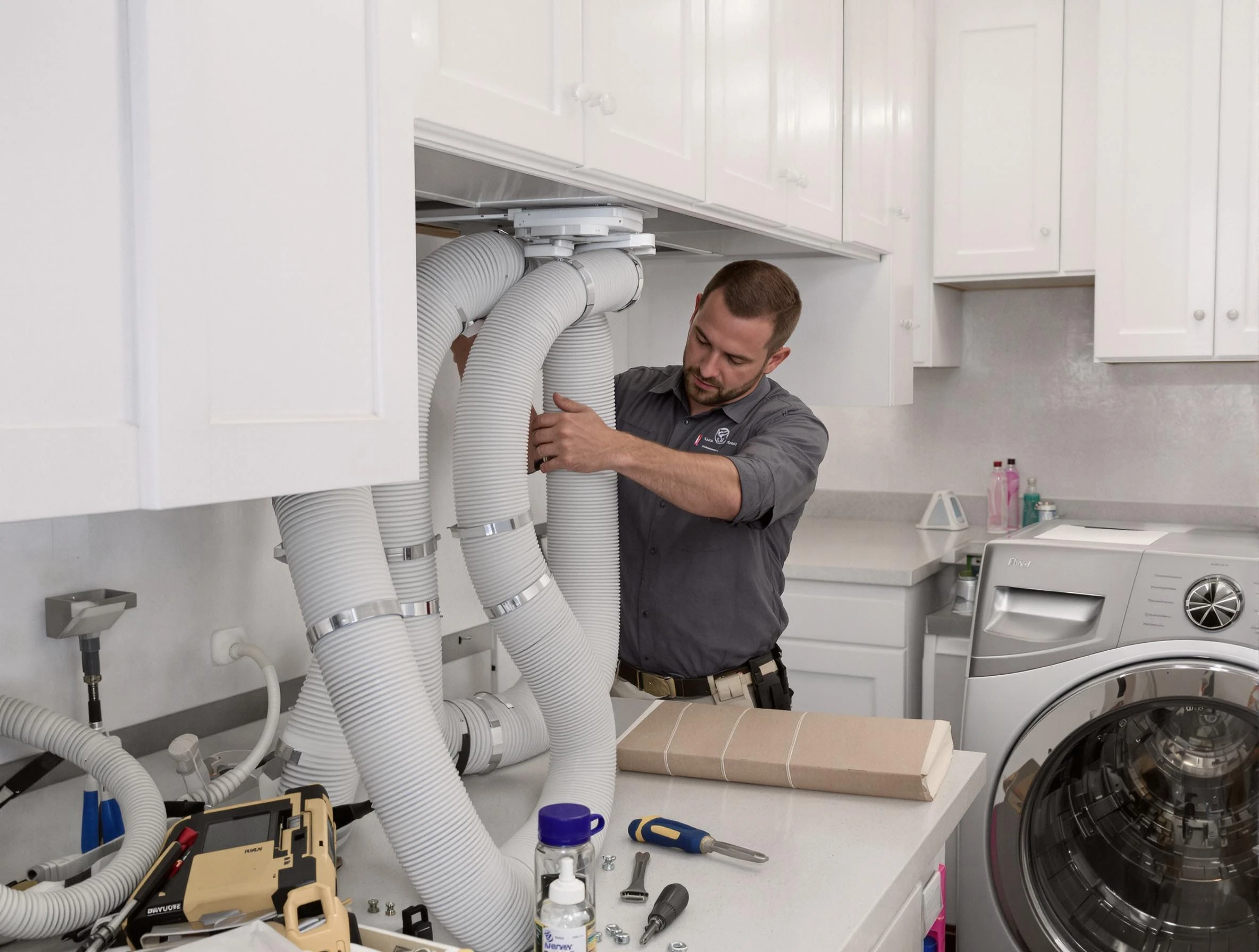 Adams Dryer Vent Cleaning's certified technicians ensure proper routing, secure connections, and optimal airflow. Professional installation prevents common issues like kinks, gaps, and improper lengths that can lead to fire hazards.